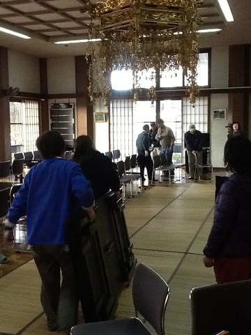 午後になると役員さん達も駆けつけてくれて、場内設営。